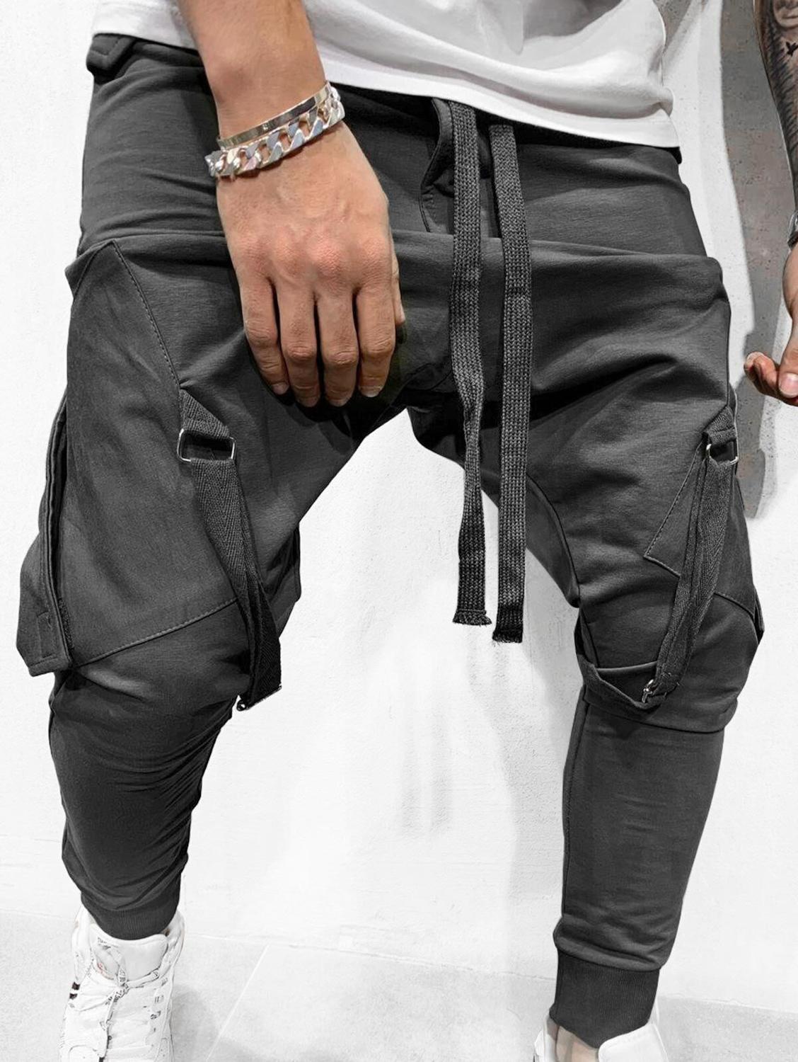 2020 Men’s Jogging Sweatpants Casual Tether Hip Hop Big Pocket and Leg Straps Sweatpants Tracksuit Pants Full Length Pants