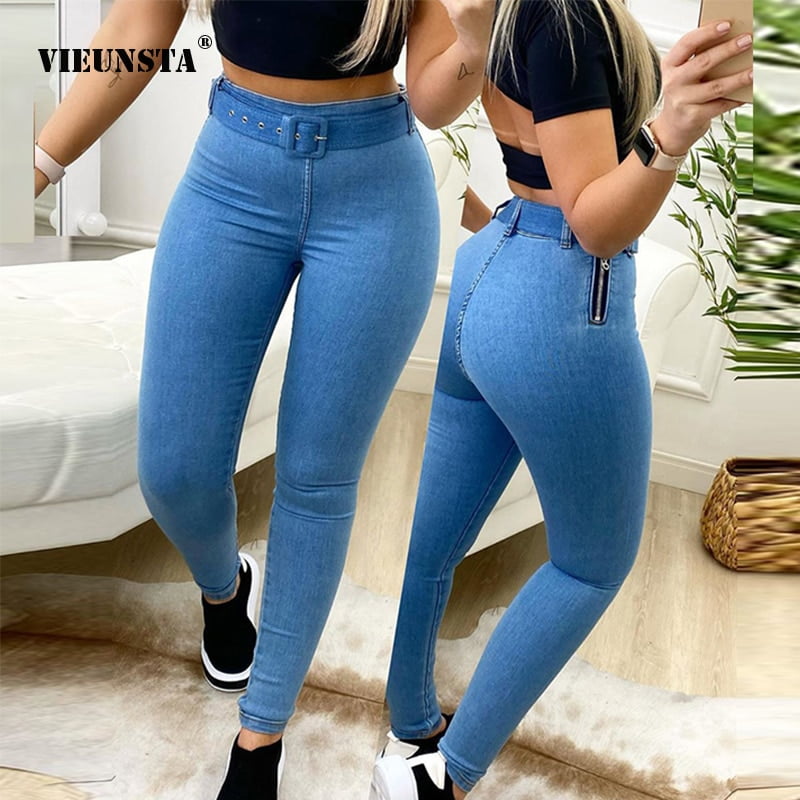 2021 Casual Design High Waist Trousers Fashion Lady Side Hollow Out Pencil Pants Spring Autumn Elegant Solid Women Skinny Jeans