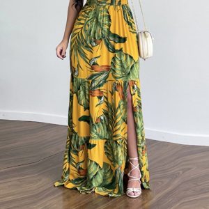 Be the first to review “2023 New Summer O-Neck Print Dress Italian Noodle Strap Beach Dress Women’s Sleeveless Lace Up Strap High Waist Split Dress” Cancel reply
