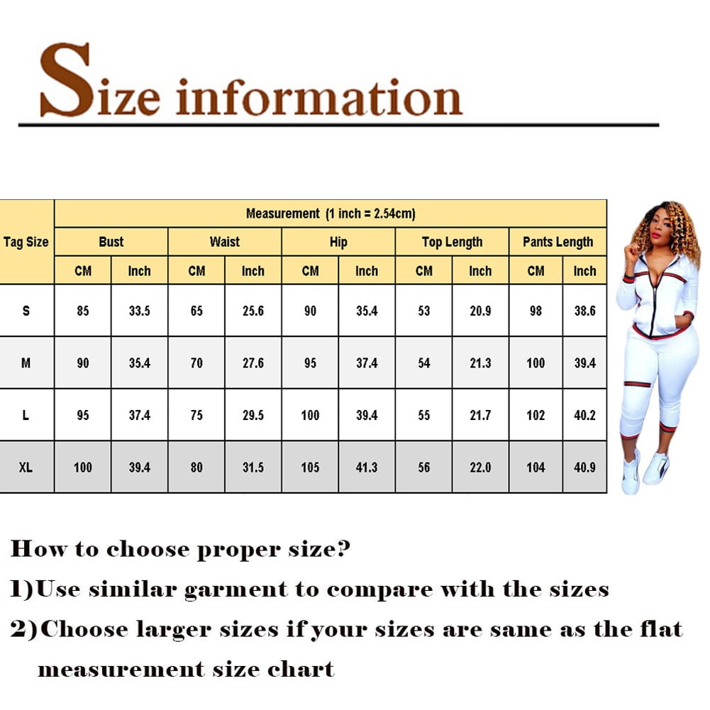 There is 2-3% difference according to manual measurement. please check the measurement chart carefully before you buy the item. 1 inch = 2.54 cm Please note that slight color difference should be acceptable due to the light and screen. What You Get: 2pcs Tracksuit Coat+Pants (pls make sure the length,model figure is only for your reference ) Preview: |