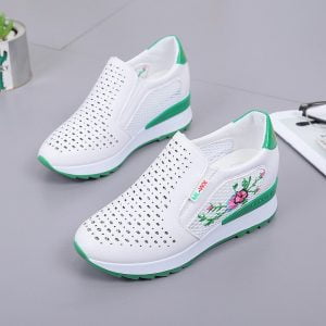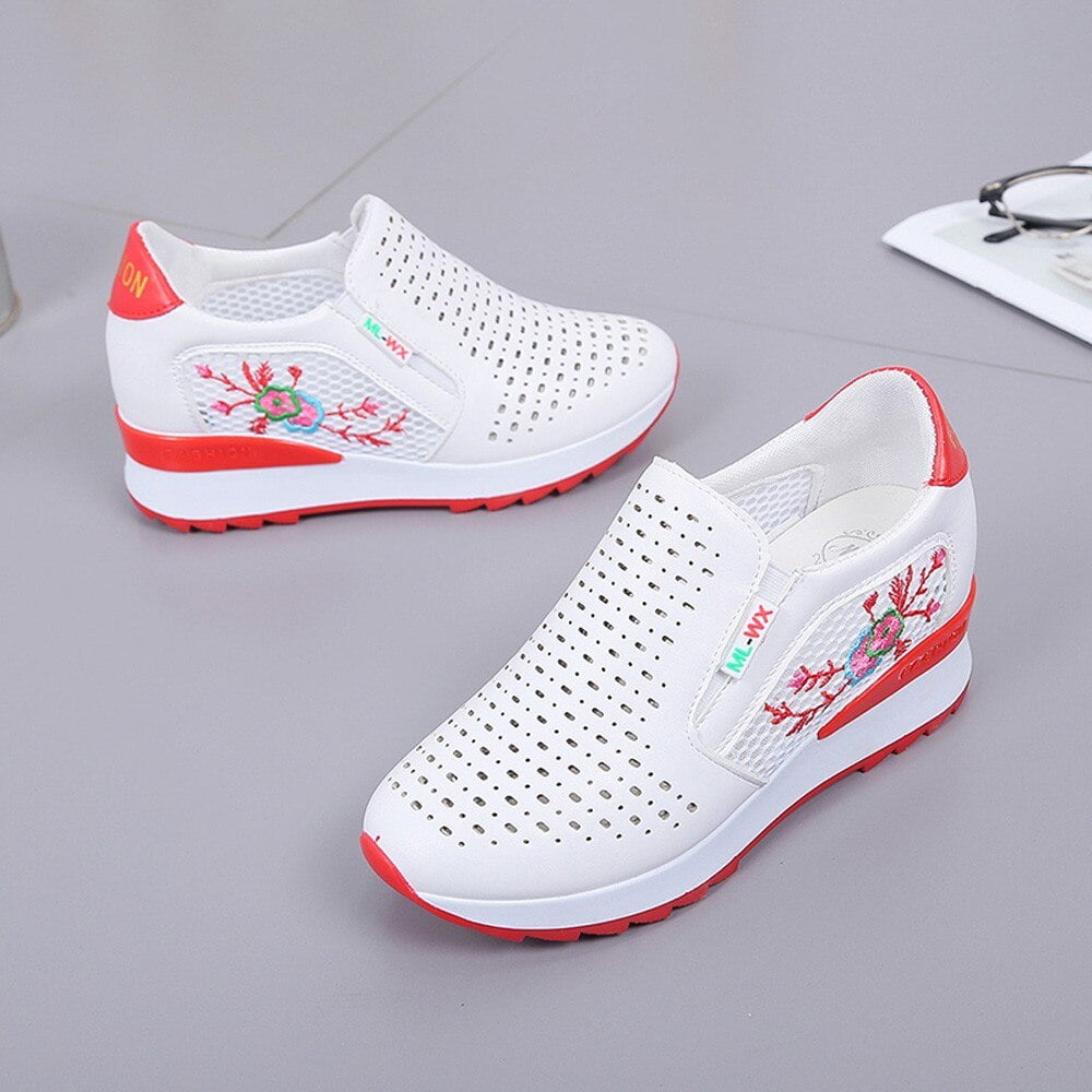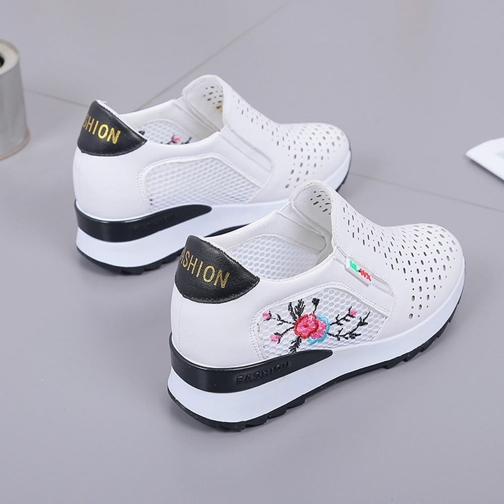 Fashion Floral Embroidered Leather Platform Evelator Shoes Women Swing Wedge Inner Increase Casual Shoes Platform Shoes