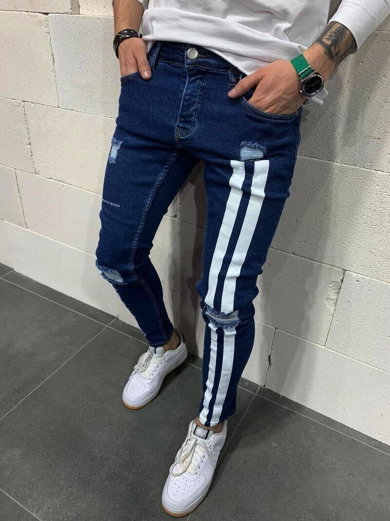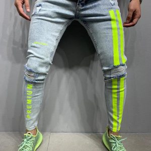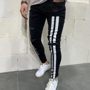 Be the first to review “Letter printing Ripped Pencil Jeans Men Skinny Biker Side Striped Jeans Destroyed Hole Hip Hop Slim Fit Jean Men’s Pant” Cancel reply