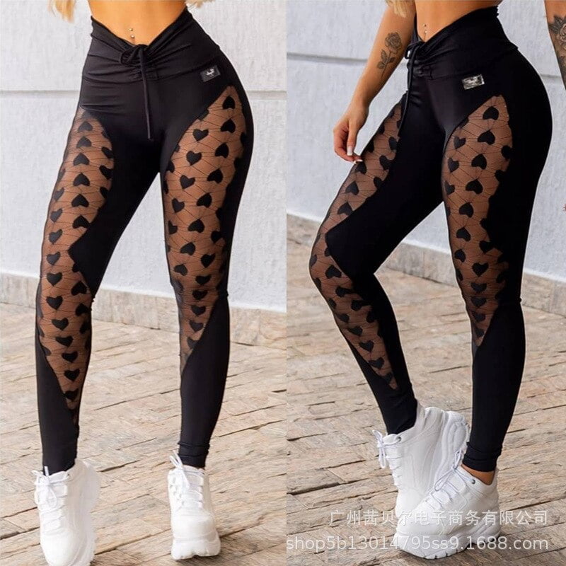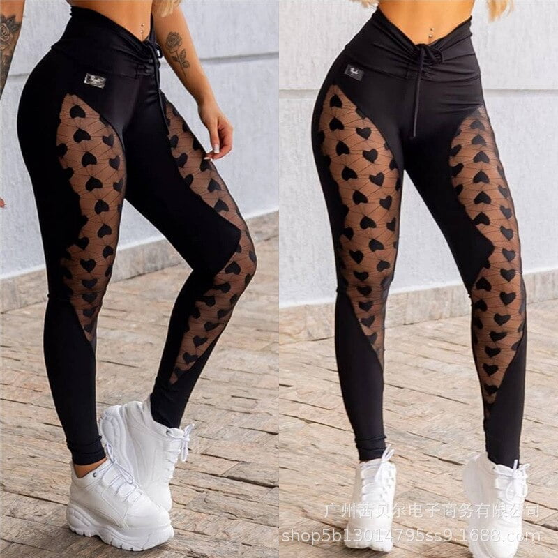 WEPBEL Women Pencil Pants Casual Sports Pants Trousers Leggings New Black Heart-Shaped Lace Drawstring