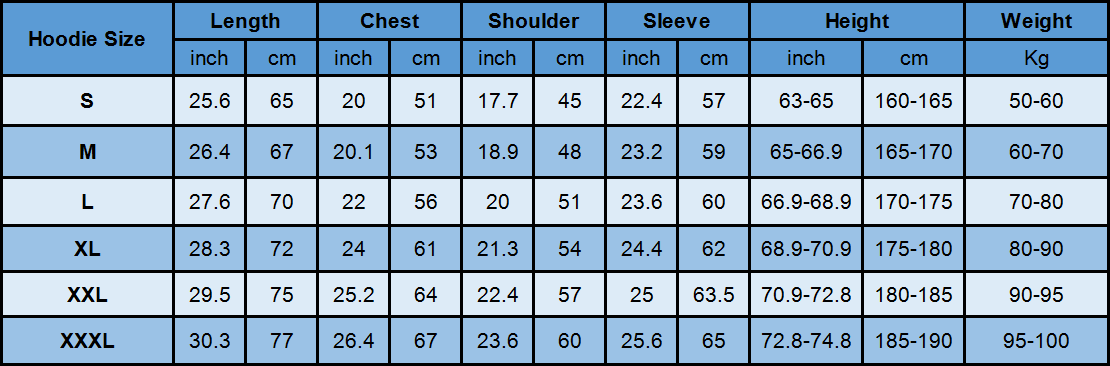 The Hoodie has a 2-3 centimeter error. If you can’t confirm the size send the mail to us.